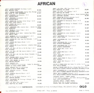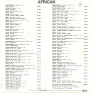 - Some back sleeves of the "African" series contain discographical information on parts of the label catalogue: